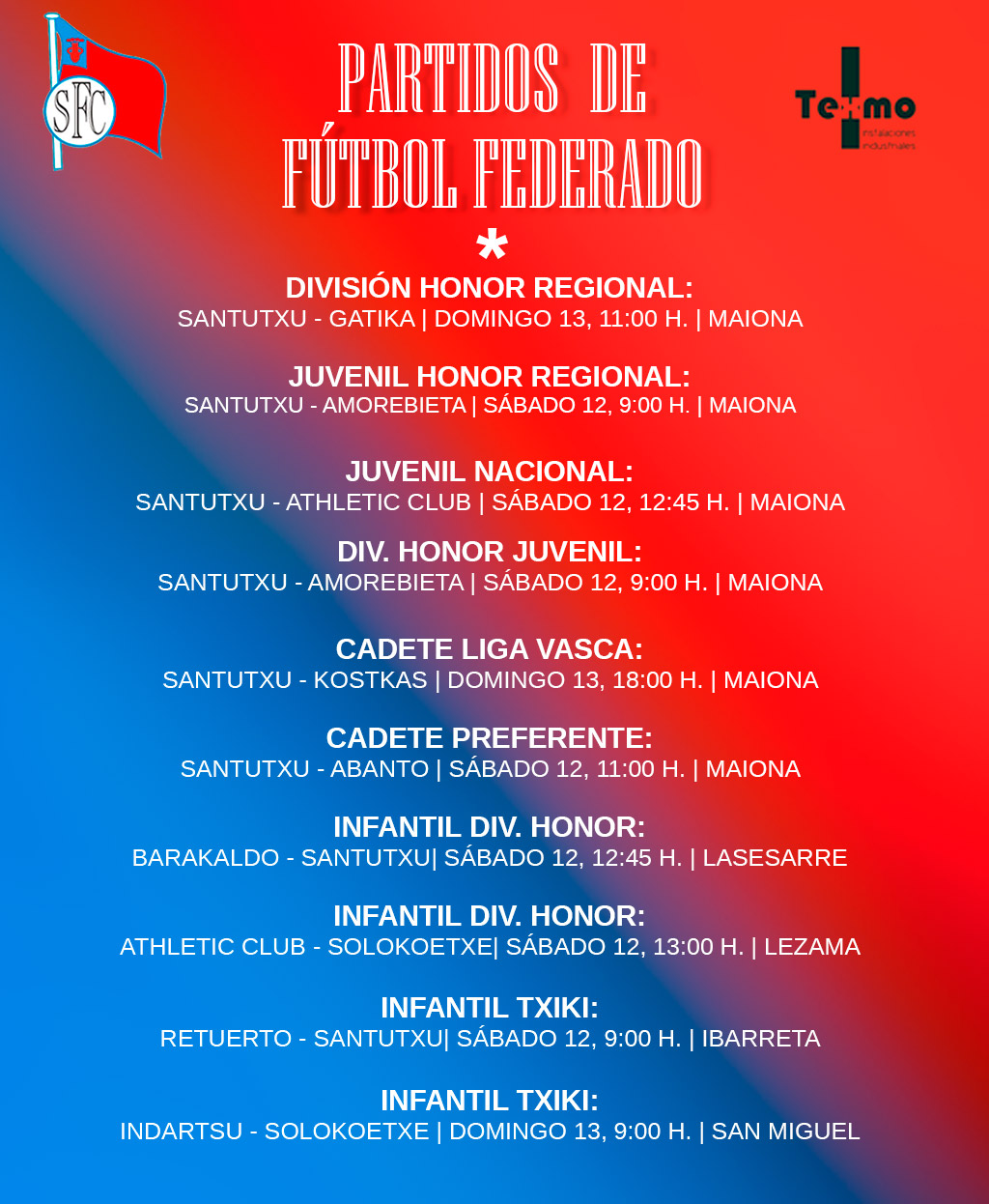 Partidos del fin de semana para nuestros equipos federados